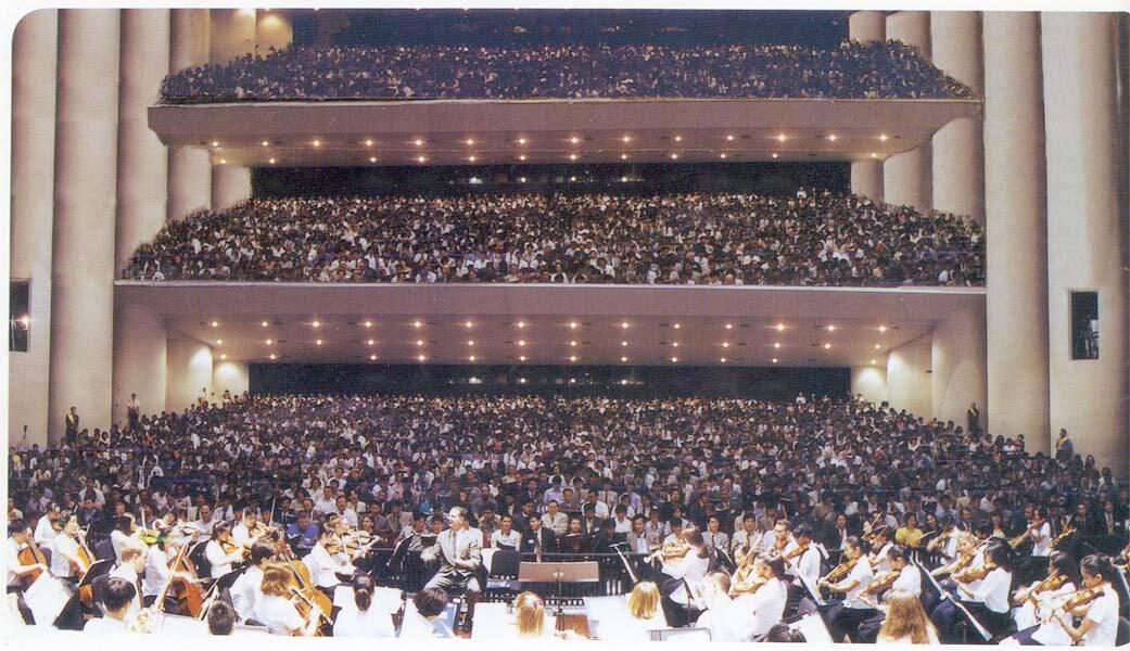 2. В специальном издании по поводу UBF-овской Летней Конференции MSU [Michigan State University] в 1999 году была фотография зала MSU. Но на фото два этажа в этом зале [зал, наполненный участниками конференции] были сфабрикованы до трёх этажей [естественно, без упоминания об этом в тексте, чтобы создать впечатление, что было гораздо больше участников. (Фото сфабрикованных этажей). Та же самая фальсификация проделывалась и в изданиях других лет. Например, в «World Missions» от января 1998 года на стр. 29 (пририсован несуществующий балкон); в «World Missions» от июля 1998 года (пустые верхние этажи заполнены несуществующими людьми]. Это аморальный поступок, который не может быть принят в обществе. Из-за этого многие молодые христиане, в земле ли миссии или в Корее, впали в искушение и отпали от веры. Это не только привело к падению общественного доверия к UBF, но и повлекло за собой недоверие к личности и убеждениям м. Самуэля Ли. Тем не менее, почему Вы снова и снова повторяете такие вещи? Почему Вы публикуете информационное издание UBF в Корее, которое редактируется в штаб-квартире мирового UBF в Чикаго? Почему Вы продаете это информационное издание UBF в США, которое публикуется в Корее, тратя на это несколько десятков тысяч долларов Корейского UBF? На что Вы тратите эти деньги?